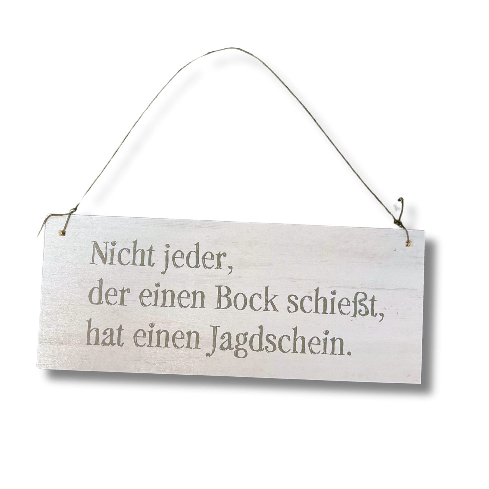 Mit der angebrachten Kordel lassen sie sich ganz einfach an einen schon vorhandenen Nagel oder Haken hängen. Man kann das Schild durch die Dicke der Platte aber auch Prima auf eine Anrichte oder Regal stellen. Die MDF-Platte ist robust und leicht zugleich. Unsere Spaß-Schilder sind ein super Geschenk für Jagdliebhaber. Wobei sie eigentlich viel zu schade sind um zu verschenken. Naja, jetzt muss man sich nur noch für einen der vielen tollen Sprüche entscheiden.
